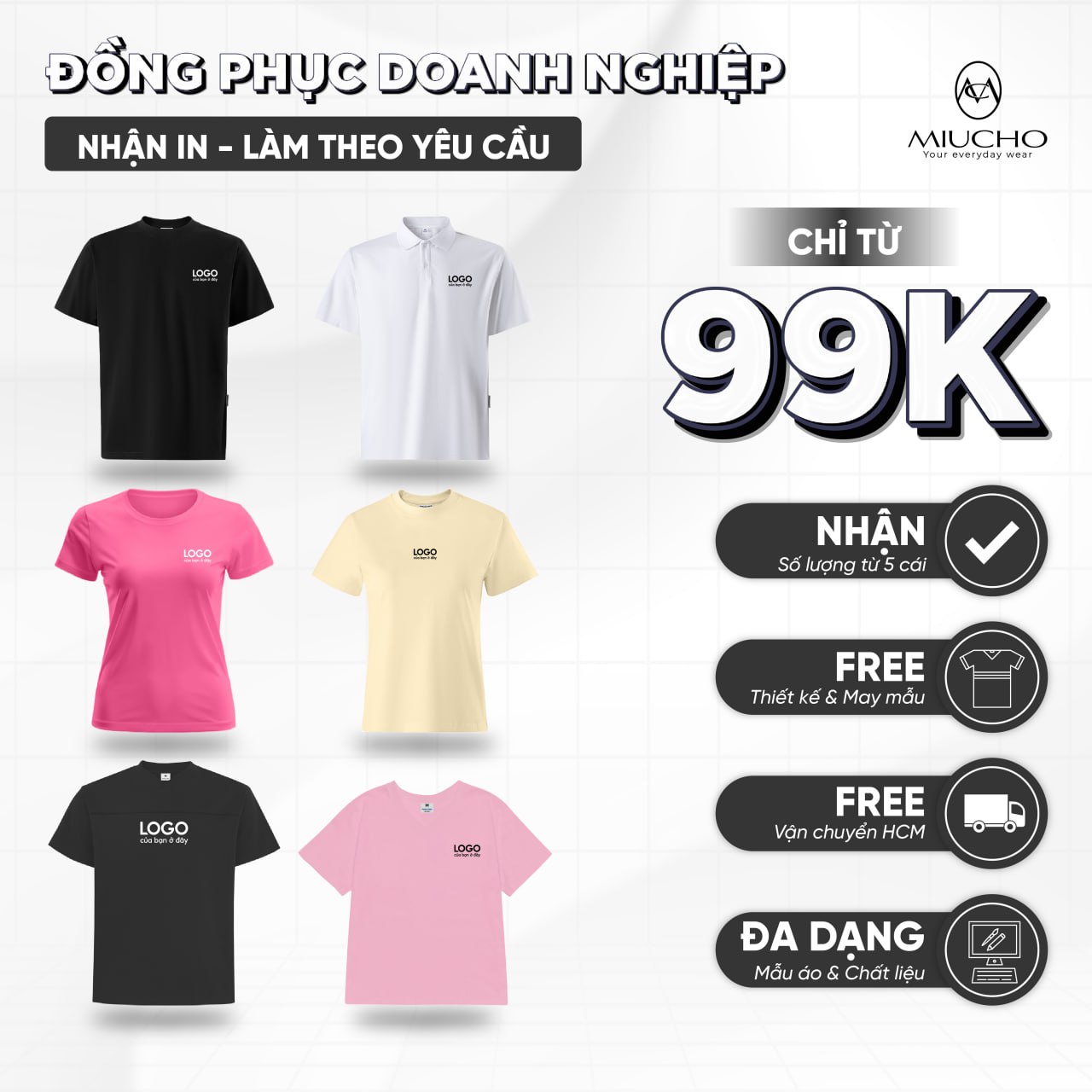 Miucho nhận áo theo thiết kế riêng từ 10 áo trở lên cho 1 mẫu.
