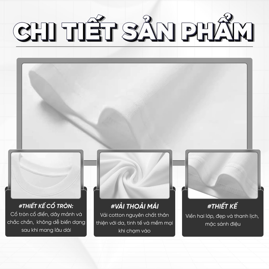 100% Cotton 2 chiều 240gsm (±3%): Thiên hút mồ hôi tốt, thoáng khí cả ngày, dễ giặt và nhanh khô.
